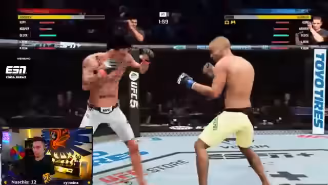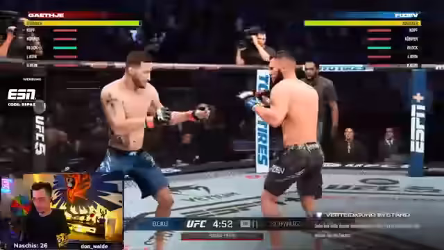 00:50:26Der Streamer wechselt zu dem Spiel UFC 5 und beginnt mit Kämpfen. Er äußert seine Frustration über die übermächtigen Kämpfer Tupuria und McGregor Prime, die aus seiner Sicht das Gameplay ruinieren, da kein realistisches Training möglich ist. Trotzdem bereitet er sich auf ein bevorstehendes Turnier vor und bewertet seine eigene Leistung als 'einer der Besten'. Er testet verschiedene Kämpfer und analysiert die Stärken und Schwächen seiner Gegner, während er seine eigenen Fighting-Fähigkeiten und Taktiken verbessert.