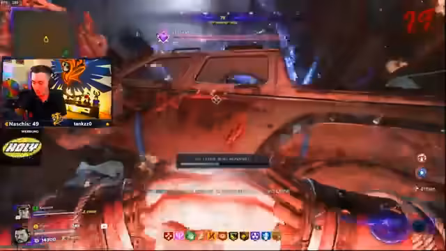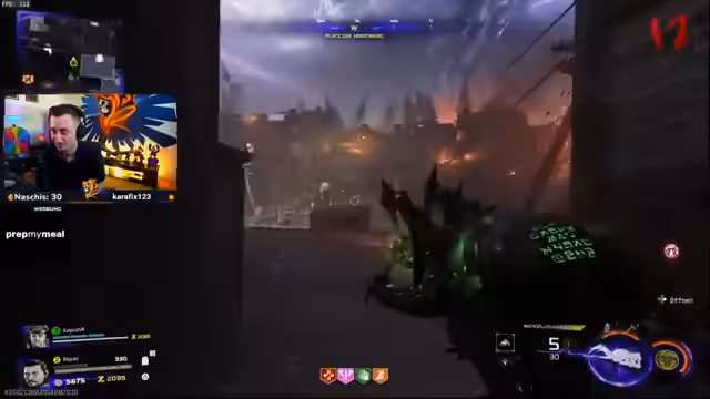 00:30:03Der Streamer und Chris starten das Easter Egg. Sie sammeln erste Teile und aktivieren den Strom. Dabei fällt auf, dass einige Spielmechaniken, wie das Sammeln von Schrott und Essenz durch das Fahren über bestimmte Linien, sehr effizient sind. Ein wichtiger Schritt ist das Abtrennen eines Zombie-Beins mit einem Tomahawk und das Anzünden mit einer Molly, um 'menschliche Überreste' zu erhalten – ein sehr willkürlicher und schwer zu erratender Schritt, der zeigt, wie komplex und undurchsichtig das Easter Egg ist. Sie müssen zudem einen besonderen Zombie, den 'Uber-Klaus', finden und besiegen, um einen Stabilisator-Chip zu erhalten. Dieser Chip ist notwendig, um den echten Klaus zu befreien, der sich in einem Gefängnis befindet. Die Komplexität und der Zeitaufwand des Easter Eggs werden immer wieder betont.