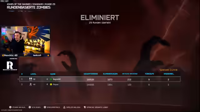 02:55:25Nach dem verlorenen Bosskampf diskutiert der Streamer über den Schwierigkeitsgrad des Easter Eggs. Er ist der Meinung, dass es sehr gut gemacht ist, aber extrem herausfordernd sei, da man die ganzezeit voll fokussiert sein muss. Er erwähnt, dass sie 29 Runden lang überlebt haben und 2 Stunden und 24 Minuten im Spiel waren. Der Streamer vergleicht das Easter Egg mit früheren Teilen der Serie und kommt zu dem Schluss, dass es zwar schwer, aber auch sehr befriedigend ist.