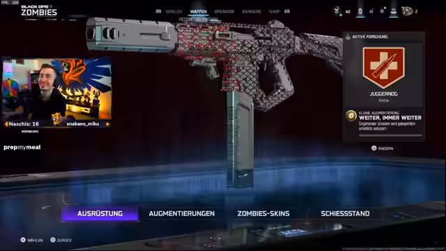 00:05:15Der Streamer begrüßt seine Zuschauer und kündigt an, heute das Easter Egg in Call of Duty Black Ops 7 Zombies mit seinem Freund Chris zu versuchen. Er erwähnt, dass sie es gestern bereits versucht haben und bis zum Bosskampf gekommen sind, wo sie den Boss auf ein Drittel seiner Lebensenergie reduziert hatten. Allerdings sei es solo sehr schwierig, da man hauptsächlich in einem Auto kämpft und der Geschützturm des Autos bei Alleingang ineffizient ist. Im Duo mit Chris erhofft er sich einen leichteren und angenehmeren Verlauf. Er plant, das Tutorial für das Easter Egg noch einmal zu konsultieren, da es sehr lange und ausführlich ist. Zudem bespricht er die Auswahl von Augmentierungen und Perks, um optimal vorbereitet zu sein, und zeigt sich überrascht über die Möglichkeit, eine zweite kleine Augmentierung zu nutzen, wenn ein Perk maximiert ist.