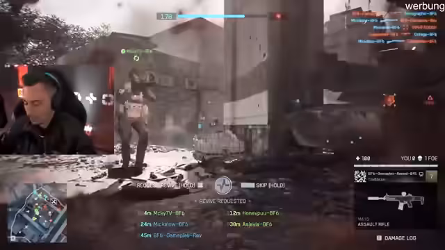 01:46:08Ein zentrales Thema im Stream ist die Waffe Shotgun. Der Streamer und sein Team beobachten, dass viele Spieler diese Waffe einsetzen und ist sich unsicher, ob diese im aktuellen Zustand als 'broken' oder übermächtig einzustufen ist. Es werden die Reichweite und der Schaden der Waffe getestet und diskutiert. Gleichzeitig werden auch andere Waffen und Klassen wie der Medic angesprochen, dessen Fähigkeit zum schnellen Reviven im Vergleich zu Battlefield 5 als 'insane' und wertvoll beschrieben wird. Es entsteht eine erste Diskussion um die mögliche Meta des Spiels.