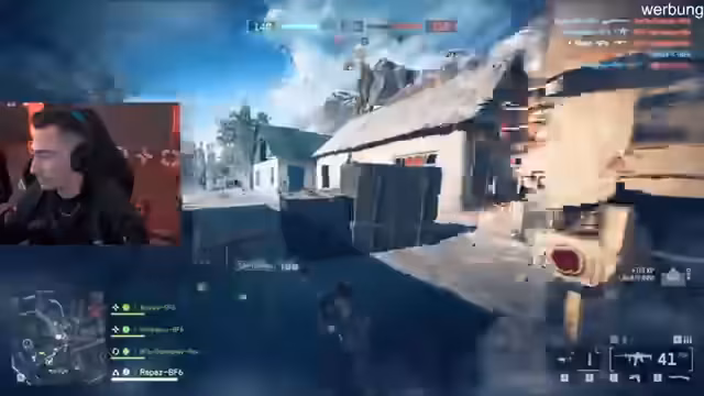 00:08:01Zur Hauptvorführungszeit beginnt die Präsentation des Battlefield 6 Multiplayer-Trailers. Der Streamer äußert sich begeistert und vergleicht das visuelle Design positiv mit den Teilen der Bad-Company-Reihe. Die gezeigten Spielzüge, besonders der actiongeladene Trailer und die detailgetreue Zerstörung im Spiel, sorgen bei ihm für Gänsehautmomente und er sieht in dem Spiel enormes Potenzial.