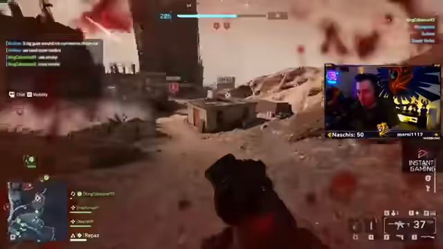 04:59:40In den frühen Minuten des Streams gerät der Streamer in eine hektische Situation, als er von gegnerischen Panzern eingekesselt wird. Nachdem er eine strategische Rauchgranate wirft, um Deckung zu suchen, kann er einen Panzer mit seinem Team erfolgreich umzingeln und ausschalten. Die Diskussion konzentriert sich auf die Wirksamkeit verschiedener Waffentypen, wobei der RPG als flexibel, aber nicht unbedingt schadensstärker als Alternativen wie das DSG angesehen wird. Er und sein Partner erzielen durch präzise Schussfolgen 900 Schadenspunkte und vernichten so den Panzer.
