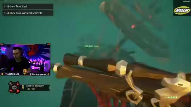 06:20:27Zu Beginn des Zeitstempels werden konkrete Pläne für einen koordinierten Angriff auf gegnerische Schiffe besprochen. Es geht darum, Spawn-Strategien zu nutzen, die Positionen zu tauschen und Planderbombs und Kanonenfeuer einzusetzen. Der Streamer und sein Mitspieler Splash planen, den Gegnern in den Rücken zu fallen und versuchen, aus einer günstigen Position heraus anzugreifen. Währenddessen werden mehrere Schiffe gesichtet und abgeurteilt, von denen einige bereits geflohen sind, was zu einem direkten und intensiven Nahkampf führt.