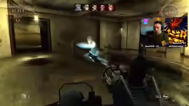 04:53:53Es wird die erste Mission der Elite-Liga gestartet, Rumble in the Jungle, Elimination, bei der man in 3 Minuten 30 Erster werden muss. Es wird die Schwierigkeit betont und Neustart gefordert. Es wird ein neuer Modus gestartet, Team Deathmatch, bei dem 30 Abschüsse in 3 Minuten erreicht werden müssen. Es wird die lustige Ansage im Spiel hervorgehoben. Es wird der Arcade-Mode Virus gelobt, der in Call of Duty als infiziert bekannt ist, und die Möglichkeit zum Schummeln mit der Geisterknarre. Es wird die Frage aufgeworfen, ob die Geisterknarre Insta-Kills ermöglicht. Es wird die OP-Stärke der Geisterknarre betont, aber auch die schlechte Vision. Es wird ein neues Spiel gestartet, Luftschutzbunker, bei dem man in 2 Minuten 30 Gold erreichen muss. Es wird die Map als unbekannt bezeichnet und der Sound von Infiziert als creepy. Es wird ein neues Spiel gestartet, Disco, bei dem man drei Minuten überleben muss.