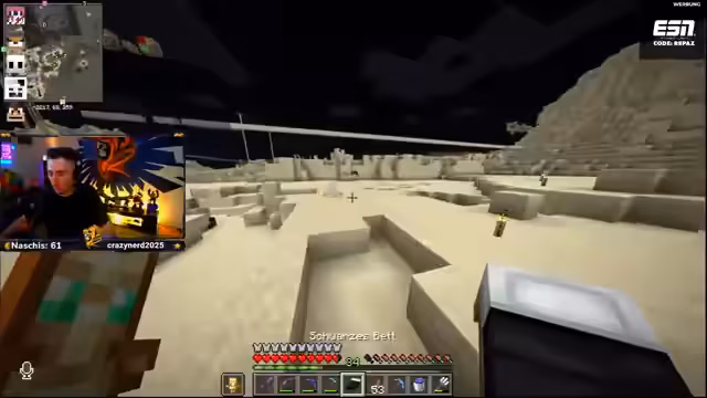 09:37:07Der Stream beginnt mit der Suche nach einem Mitspieler, der nicht in der Welt ist. Die Teilnehmer diskutieren über das Problem, dass keine neuen Mobs spawnen, da sie sich zu hoch in der Welt befinden. Im Anschluss konzentrieren sie sich darauf, einen Mitspieler auszustatten und voll zu équippen. Dazu werden notwendige Ressourcen wie Netherite-Ingots und Mending-Bücher gesammelt und verteilt, um den Spieler wieder auf den Stand der anderen zu bringen. Die Teilnehmer arbeiten zusammen, um die benötigten Materialien schnell zu beschaffen und zu verteilen.