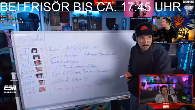 11:54:59Die Kommunikation und Koordination innerhalb des Teams ist gestört. Es kommt zu Missverständnissen, wer welche Rolle übernimmt und wer Discord-Benutzer ist, was dazu führt, dass niemand den Server betreten kann. Der Streamer wirkt gereizt und spricht von einem 'gefickten' Workflow. Ein Nutzer namens Nick Beats wird erwähnt, was auf interne Spannungen hindeutet. Die Serverprobleme werden durch einen Host namens Stetsi gemeldet, der behauptet, das Problem behoben zu haben.