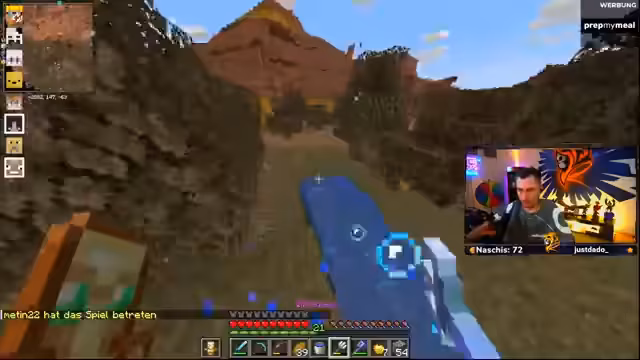 02:57:45Nach einem erfolgreichen Handel übergibt der Streamer Danny einen vollverzauberten Mace und einen Dreizack als Belohnung. Gleichzeitig plant er einen PvP-Kampf (1v1) gegen einen Kontrahenten, bei dem er eine Herausforderung ausspricht. Die Gruppe mobilisiert ihr Team, um in den Konflikt einzugreifen. Es folgt eine Diskussion über die Verteidigung des eigenen Turms und die Organisation von Gegenmaßnahmen gegen Feinde.
