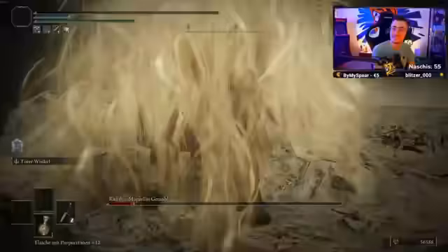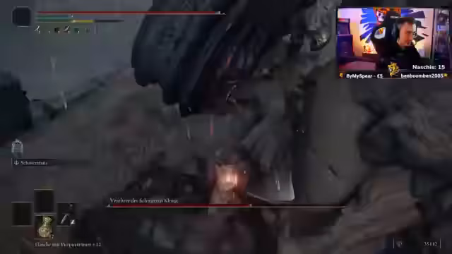 02:40:23Ein wiederkehrendes Problem ist die extrem schlechte Kameraführung und die sehr dunkle Umgebung, die es dem Streamer unmöglich macht, die Angriffe der Bosse richtig einzuschätzen. Dies führt zu zahlreichen unnötigen Toden, insbesondere gegen Gegner wie den Schmelztiegelritter und die wilden Bären. Die Frustration steigt, da er die Angriffe nicht rechtzeitig sehen kann und keine Möglichkeit zum Heilen findet, ohne in tödliche Gefahr zu geraten.