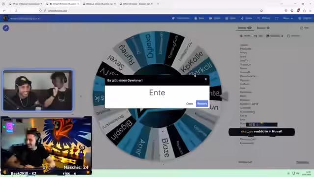 06:51:56Ein knappes und nervenaufreibendes Duell um den zweiten Platz und damit 500 Euro entfacht. Zwei Teams, Amar & Tuchen gegen Kian & Hamid, liefern sich einen taktischen Heilungs-Kampf. Es kommt entscheidend auf gutes Timing und das Vermeiden von 'Fettfingern' ab. Kian & Hamid gewinnen knapp, weil sie ihre Bandagen effizienter einsetzen. Der Streamer gratuliert den Gewinnern und analysiert die Entscheidung.