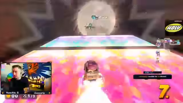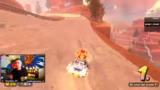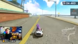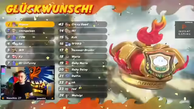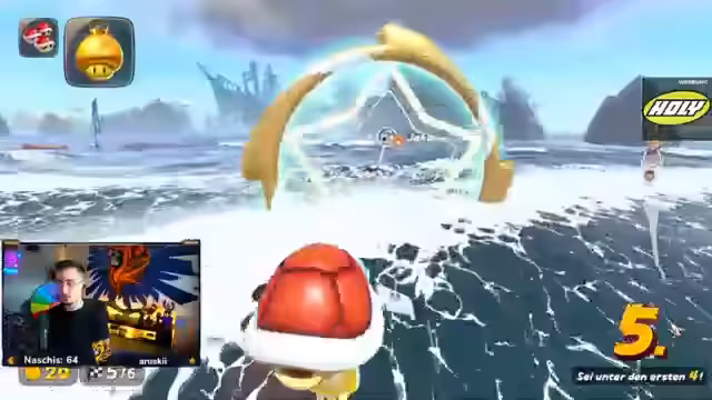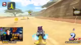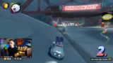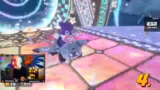 03:22:07Ein fataler Treffer durch einen Blue Shell wirft ihn zurück und vernichtet seine Siegchancen. Er äußert seine Wut über den "scam"-Charakter des Spiels, insbesondere im Bezug auf Blue Shells und die itembasierten Störungen. Das Rennen endet für ihn auf dem vierten Platz mit Minuspunkten. Er hat während des gesamten Rennens ständig Gegenangriff gefahren und versucht, sich durch geschicktes Item-Management zu verteidigen, was jedoch letztlich nicht ausreichte.