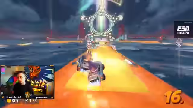01:55:39Der Streamer versucht die Baum-Abkürzung in der Vario Stadium-Strecke zu meistern. Es wird eine präzise Kombination aus Double Boost Jump und Wall-Ride benötigt. Die Ausführung ist jedoch sehr schwierig, da das Zeitfenster extrem eng und die Positionierung kritisch ist. Mehrere Versuche scheitern, da er zu früh oder zu spät abspringt und gegen die Mauern prallt. Er findet keinen konsistenten Anhaltspunkt und fühlt sich von der Komplexität der Aufgabe überfordert.