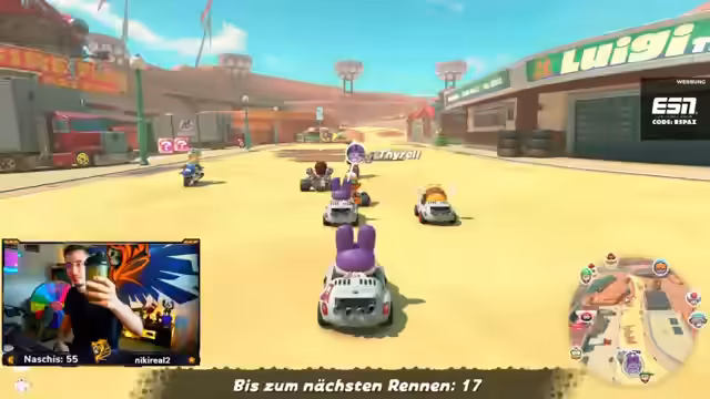 06:40:22Innerhalb der Rennen zeigt der Streamer eine aktive Strategie. Er versucht, Items wie den Blitzgeist oder Pilze defensiv zu nutzen, um Angreifer abzuwehren oder sich Vorteile zu verschaffen. Ein zentraler Punkt ist sein Verständnis für das "Bagging" – das Zurückfallen im Rennen, um starke Items wie Blitze oder goldene Pilze zu sammeln, und diese erst im entscheidenden Moment einzusetzen, um sicher in den Top 4 zu landen. Diese Taktik bezeichnet er als den "way to go" im Spiel.