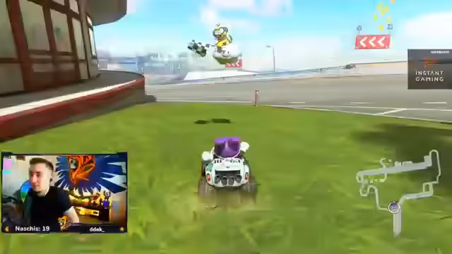 05:38:58Trotz der negativen Stimmung demonstriert der Streamer sein hohes Fahrkönnen. Er verkündet stolz, dass er 'eine Legende' ist, und versucht, zwei hintereinanderliegende Abkürzungen ('Back-to-back') auf einer Map zu treffen. Obwohl er es fast schafft, wird er am Ende durch einen zufälligen Treffer von hinten auf den letzten Platz geschoben. Dies dient als Beweis für seine fahrtechnische Überlegenheit, auch wenn es im Endergebnis nicht belohnt wird.