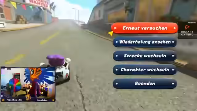 06:03:03Der Streamer kündigt an, für 'Team Blau' zu spielen, was eine Art Wettbewerb oder Event innerhalb des Streams darstellt. Trotz seiner Absicht, normal zu fahren und Punkte zu machen, erleidet er am Ende eine schwere Niederlage. Er wird in einer langen, anstrengenden Runde auf den letzten Platz gesetzt, was als 'Feierabend' und als miserables Ende für sein Bemühen dargestellt wird und die anhaltende Frustration auf dem Höhepunkt gipfelt.