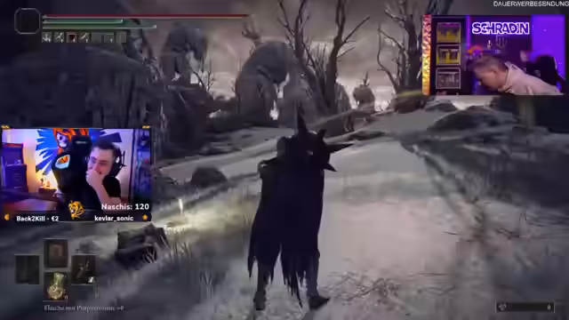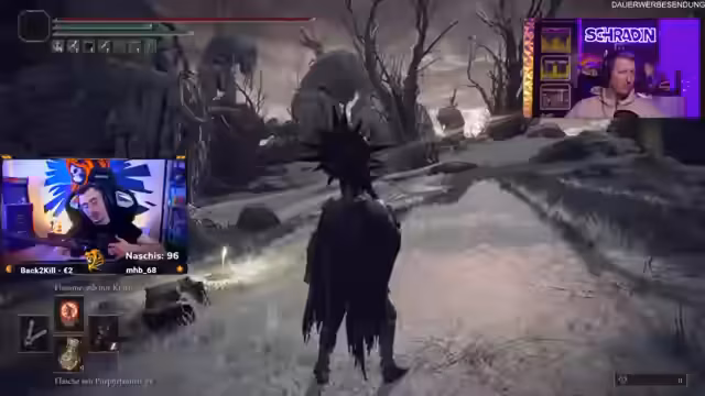 01:19:52Der Stream beginnt mit dem Coaching von Schradin, einem Spieler, der an einem neuen Spiel in Elden Ring teilnimmt. Es gibt Diskussionen über eine frühere 'Kinderverarsche', bei der Schradin zu stark gemacht wurde. Der Streamer möchte nun ein faire Balancing finden, das Schradin eine reelle Chance gibt. Großes Problem während des Streams ist der fehlende Spielsound bei Schradin, was zu erheblichen technischen Schwierigkeiten führt, die versucht werden zu beheben, um das Coaching fortsetzen zu können.
