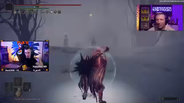 05:07:35Gegen Ende des Streams gibt es weitere erfolglose Versuche, den Boss zu besiegen. Der Streamer gibt die Taktik auf, das Pferd zu nutzen, und konzentriert sich darauf, ohne Markierung zu kämpfen und nur auf die Hände zu achten. Nach mehreren fehlgeschlagenen Anläufen kündigt er an, den Stream bald beenden zu müssen, da ein persönlicher Termin ansteht. Er bittet die Zuschauer, bei Schradin vorbeizuschauen und kündigt an, dass sie sich am nächsten Tag wieder im Elden Ring-Run sehen werden, unabhängig vom aktuellen Stand.