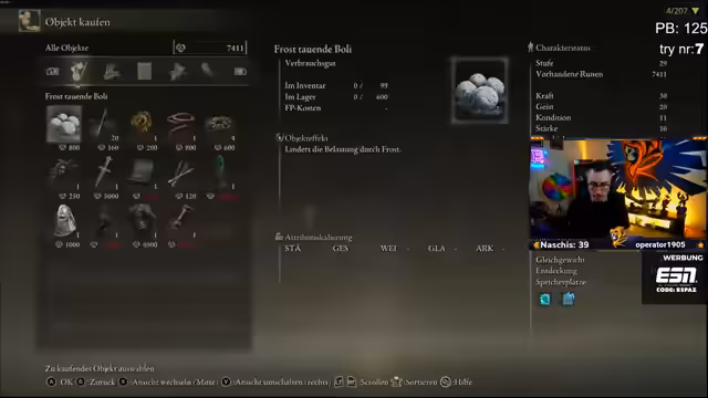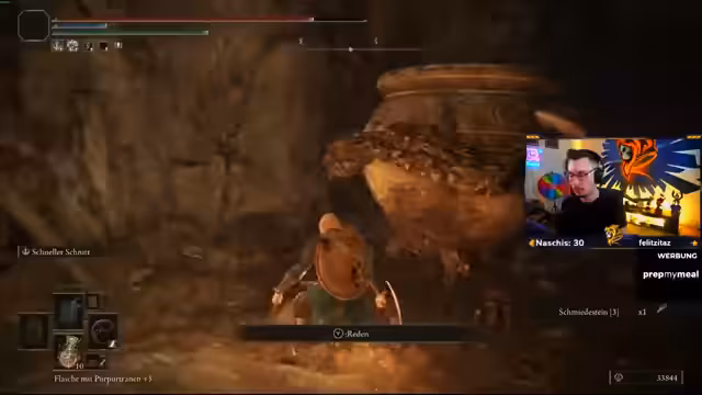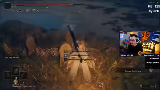 03:00:29Die Enttäuschung über die verlorene No-Death-Run führt zu sichtbarer Frustration. Innerhalb von drei Stunden scheiterte der Streamer zweimal an verschiedenen Gegnern, besonders an einem DLC-Boss, dessen Attacken er unterschätzte. Dies führt zu Selbstzweifeln bezüglich seiner Taktiken und Talisman-Wahl. Die Spannung steigt, als er erkennt, dass seine fehlende Rüstung ihn extrem verletzlich macht. Die Stimmung ist geprägt von Wut über vermeidbare Fehler und der Suche nach dem nächsten, besseren Run.