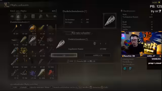 04:00:17Nach dem Verlust des neunten Run konzentriert sich der Streamer auf den aktuellen Durchgang. Er ist unzufrieden mit der schlechten Waffe, den geringen Upgrades und dem fehlenden Loot. Trotzdem bemüht er sich, jeden gegnerischen Vorteil zu nutzen und hofft auf einen zufälligen Schmiedestein, um den Run noch zu retten. Die Kampfszene gegen einen Boss endet mit einem Tod, der das Scheitern des gesamten Runs besiegelt. Die Moral ist am Boden, aber er bleibt sachlich und analysiert die Gründe für das Scheitern.