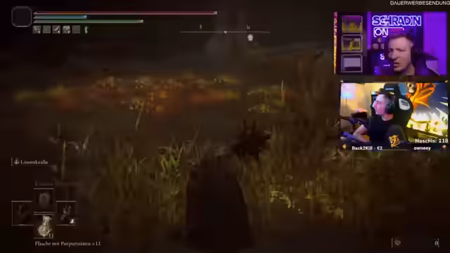 05:31:32Der Streamer und Schradin diskutieren über die Notwendigkeit, Spielmechaniken zu meistern und nicht nur zu kämpfen. Es wird ein Talisman erwähnt, der Geräusche blockt, sowie Kleidung, die Geräusche reduziert. Der Chat wird für Kommentare wie 'Ist der dumm' kritisiert, und der Streamer bittet darum, solche Äußerungen zu unterlassen. Kurz wird die Nominierung für die Early Games erwähnt und die Mods werden gegrüßt. Es wird hervorgehoben, dass der aktuelle Abschnitt des Spiels noch einfach sei, der schwere Teil aber noch bevorsteht. Schradin konzentriert sich darauf, die Position der Gegner zu beobachten und muss aufpassen, nicht entdeckt zu werden. Der Streamer ermahnt Schradin, sich zu konzentrieren und nicht ständig den Chat zu lesen, um die schwierige Szene in Elden Ring zu meistern. Trotzdem bedankt er sich für die Subs und interagiert mit dem Chat, während er auf eine günstige Gelegenheit im Spiel wartet.