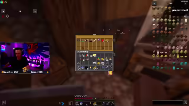 06:42:46Es wird die Suche nach Diamanten fortgesetzt und verschiedene Biome erkundet. Der Wunsch nach dem Entfernen von Todes-Pings wird geäußert. Ein Iron Claymore mit Unbreaking 3 wird gefunden und als neue Waffe ausprobiert. Eine Full Iron Rüstung wird zusammengestellt, wobei der gefundene Backpack zur Lagerung zusätzlicher Rüstungsteile genutzt wird. Es wird ein Schmiedetisch gefunden und die Möglichkeit erwähnt, Reroll Runic Weapons herzustellen. Zudem wird eine Full-Ersatz-Rüstung gefunden, was die Ausrüstung weiter verbessert.