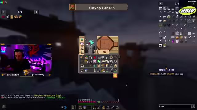 08:44:42Das Angeln wird als extrem nützlich (OP) in Minecraft hervorgehoben, insbesondere wegen der Truhen, die wertvolle Gegenstände wie Lapis enthalten können. Es wird ein Infinity-Bogen gefunden, der das Kämpfen auf Distanz ermöglicht. Die Frage, ob Pokémon Soulling gespielt werden soll, wird verneint. Es wird festgestellt, dass der Balken durch das Angler-Level größer wird. Es werden 35 Smaragde in einer Truhe gefunden. Das Ziel, Water-Breathing zu erhalten, wird diskutiert. Es wird das Ausbleiben von schweren Mustern beim Angeln bemängelt. Ein dunkelblauer Fisch wird entdeckt, was als ungewöhnlich wahrgenommen wird. Es werden 75 Eisenerz und ein Red Grouper gefunden. Es wird über die Suchtgefahr des Angelns gesprochen, wenn man weiß, welche Belohnungen möglich sind. Das Ziel, einen schweren Fisch zu fangen, wird formuliert, bevor das Angeln beendet wird.