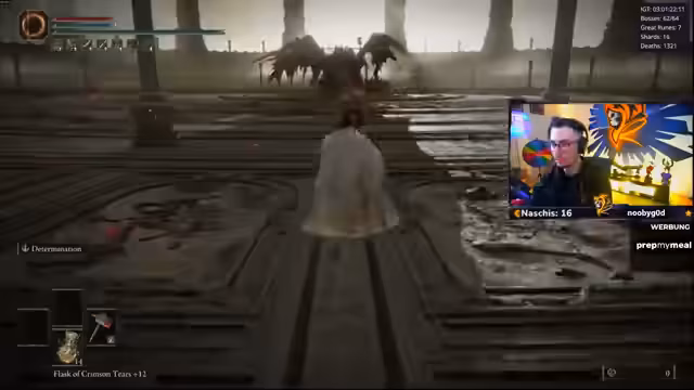 04:02:55Nach über vier Stunden intensivem Kampf ist der Streamer erschöpft und gibt für den heutigen Tag den No-Hit auf. Er hat zwar Fortschritte in der Erkennung der Muster gemacht, ist aber auf eine zufällige, vermeidbare Attacke gestoßen, die ihn jedes Mal tötet. Trotzdem ist das Training nicht umsonst gewesen, da er viel über die Phasen des Bosses und die Verhaltensweisen in dieser speziellen Mod gelernt hat. Der Streamer beschließt den Stream mit dem Versuch, den Tag mit einer positiven Note zu beenden, und kündigt an, sich dem Kampf in einer späteren Stream-Session wieder widmen zu wollen.