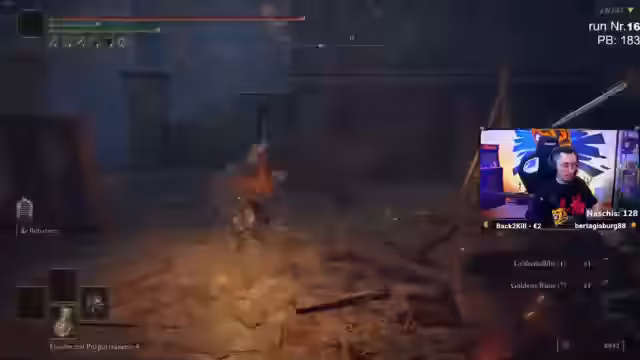 Ein neuer Versuch des No-Death-Runs im Elden Ring Randomizer wurde erfolgreich begonnen. Nachdem vorherige Läufe an einem Boss gescheitert waren, startete der Streamer mit einer als sehr stark eingestuften Treuwaffe. Die erste Konfrontation mit einem Boss konnte dieses Mal gemeistert werden.
