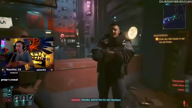 06:32:18Ein neuer Auftrag führt den Streamer nach Little China. Das Ziel ist es, ein spezielles Nierenimplantat für einen Kameraden zu beschaffen, das wegen einer seltenen Krankheit notwendig ist. Diese Mission erfordert Tarnung und strategisches Vorgehen in einem feindlichen Umfeld. Gleichzeitig nutzt der Streamer die Gelegenheit, sein Auge mit einem hochwertigen Cyberware-Upgrade auszustatten, was ihm einen entscheidenden Vorteil im Kampf verschafft.