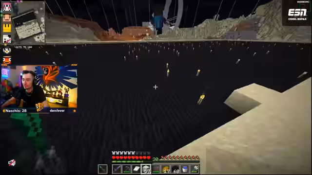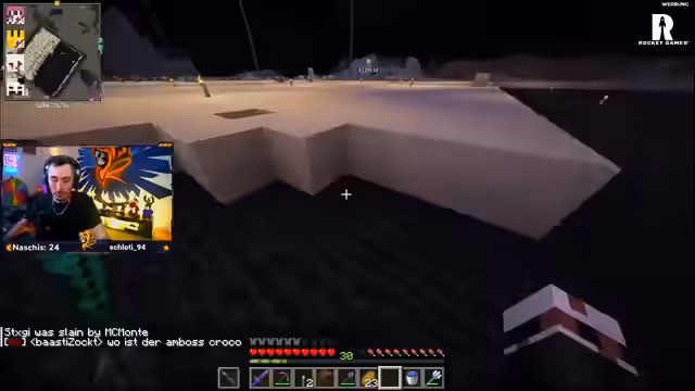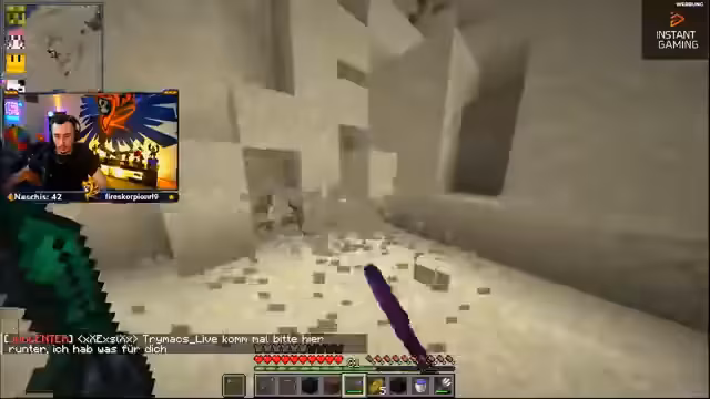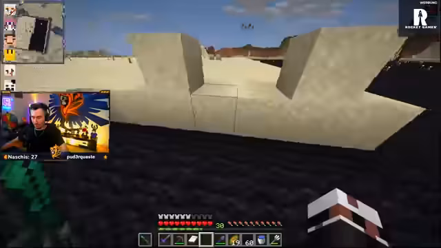 01:39:40Ein dringendes Problem ist der Mangel an Sand, da ein großer Bedarf für die Herstellung von Never-Ride-Beacons besteht. Der Streamer betont, dass das Farmen von Sand im Nether eine enorme Zeitverschwendung sei und bittet das Team um Lösungen. Es stellt sich heraus, dass das Team zwar viel Sand besitzt, diesen aber bereits für andere Zwecke verbraucht hat. Die Koordination, um das benötigte Material zu beschaffen, wird als komplex beschrieben.