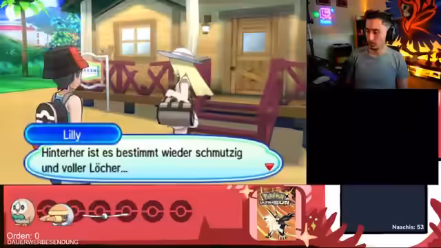05:36:54Der Stream beginnt mit dem Einstieg in Pokémon Ultra Sonne. Der Streamer erkundert die Spielwelt und trifft auf verschiedene Pokémon. Er äußert sich über das frühe Spielgefühl, das als besonders zäh beschrieben wird, da viel Tutorial und wenig bereits entwickelte Pokémon vorhanden sind. Der Streamer bemängelt die fehlenden Entwicklungen im Early-Game und die damit verbundenen Schwierigkeiten beim Aufbau eines starken Teams.