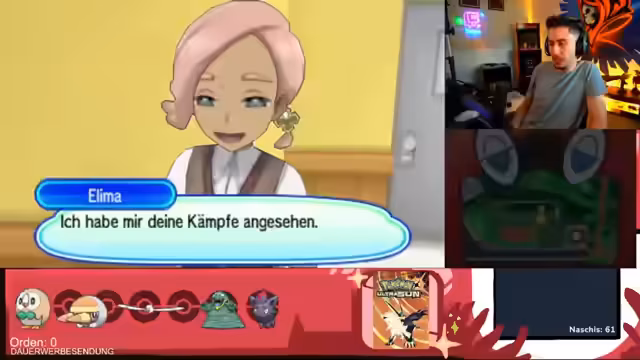 03:24:17Zu Beginn des Streams spielt der Streamer Pokémon Ultra Sonne und stellt fest, dass er dieses Spiel noch nie gespielt hat und alle Pokémon-Spiele nachholt. Er macht sich auf den Weg, um zu trainieren, da ihn eine Lehrerin verprügelt hat. Dabei zeigt er seine Vorliebe für bestimmte Snacks und erörtert die Stärke seiner Pokémon. Er ärgert sich über die langsame Entwicklung eines bestimmten Pokémon, das sich erst auf Level 38 entwickelt, und überlegt, sein Team neu zu strukturieren, um bestimmte Pokémon wie Slimer zu stärken.