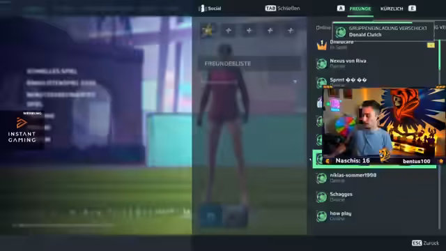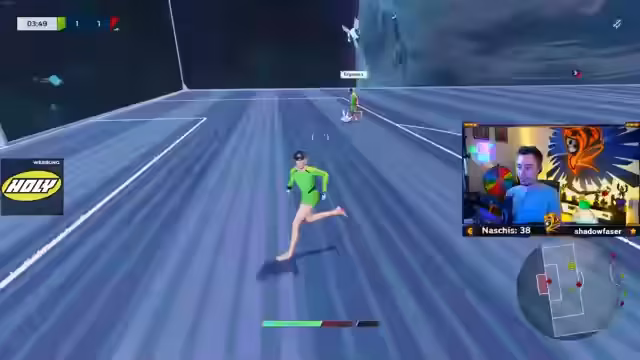 04:01:42Ein Spieler verliert die Verbindung zum Spiel, was ein technisches Problem verdeutlicht. Trotz des Fehlerns eines Mitspielers wird das Spiel in einem 4-gegen-4-Format fortgesetzt, da die Wartezeit auf einen neuen Mitspieler zu lange wäre. Die Spieler wechseln die Positionen, während ein anderer sein Setup optimiert. Der Wechsel auf ein kleineres Spielfeld und die veränderte Dynamik (4-gegen-4) erfordern eine neue Anpassung der Taktiken und der Raumaufteilung.
