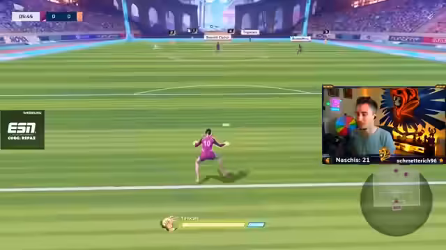 01:03:45Während des Streams steigen weitere Teammitglieder wie Max, Chef Strobel und Reaper in das Spiel ein. Da einige Teilnehmer das Spiel noch nie gespielt haben, beginnt ein intensives Tutorial. Das Gameplay-System, inklusive der Steuerung des Charakters, der Ballannahme, des extra effort und der Schussvarianten, wird detailliert erklärt, um den Neulingen einen leichten Start zu ermöglichen.