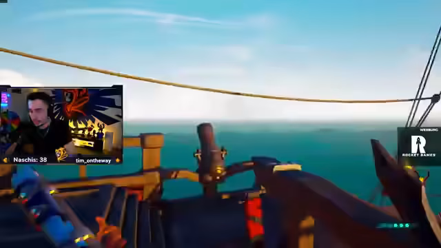 03:11:25Im Sea of Thieves-Teil des Streams gibt es intensive PvP-Kämpfe, bei denen der Streamer gegen andere Spieler antritt. Höhepunkt ist die Konfrontation mit dem World Event 'Burning Blade', einem mächtigen Schiff. Der Streamer schafft es, das Schiff zu kapern, kämpft aber mit den Herausforderungen des alleinen Spielens und der instablen Serverperformance.