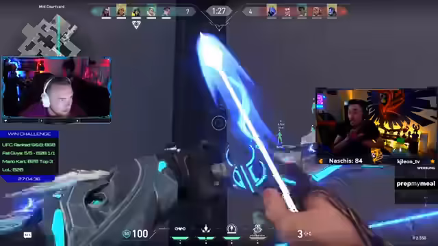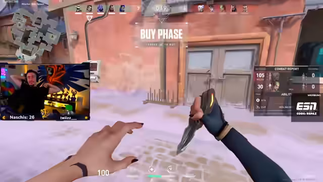 10:20:09Der Fokus liegt auf einem hochspannenden Valorant-Spiel, das mit einem 7:0 für einen Spieler beginnt. Nach einem Rückstand und weiteren Runden wird das Spiel für den Streamer unerträglich und emotional aufreibend. Er äußert seine Sorge über den Ausgang und den möglichen Verlust eines Versuchs, und die Spannung steigt bis zum Ende des Spiels.