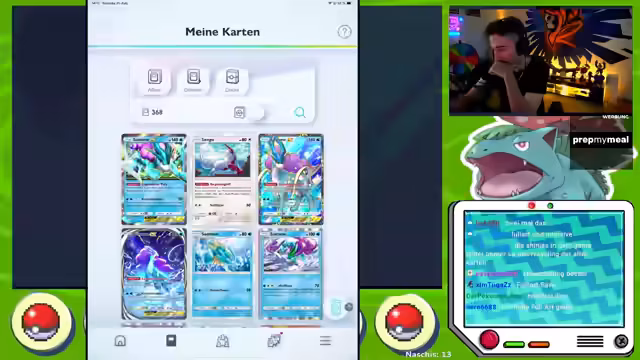 01:24:52Nach der Pack-Öffnung wünscht sich der Streamer eine Funktion, um Decks in Pokémon zu kopieren, da er nun kein Interesse am selbstständigen Erstellen hat. Er präsentiert ein von ihm genutztes Deck, ein sogenanntes OP-Amigento-Deck, mit dem er häufig hohe Winstreaks erzielt und das er als extrem stark und No-Brainer-mäßig beschreibt. Dieses Deck bezeichnet er als Allrounder, der über mehrere Sets hinweg Top-Tier bleibt, und startet immer mit seinem einzigen Basis-Pokémon.