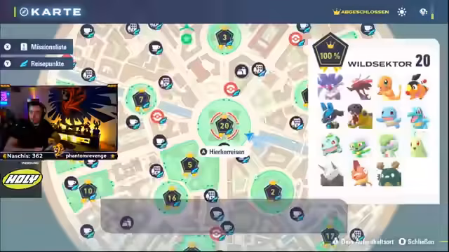 Der Spieler widmet sich dem vollständigen Abschluss von Pokémon Legends: Z-A. Dabei müssen noch fünf Kampfsektoren im ZR Royale gemeistert und über 1000 Siege errungen werden, um den begehrten Schillerpin zu erhalten. Diese Aufgabe wird als zeitaufwendig und repetitiv beschrieben. Nach dem erfolgreichen Erwerb des Schillerpins, der die Chancen auf Shiny-Pokémon erhöht, konzentriert sich der Spieler auf die gezielte Jagd nach seltenen Exemplaren, insbesondere solchen, die eine Mega-Entwicklung durchführen können. Es werden verschiedene Strategien und Orte für die effiziente Shiny-Jagd diskutiert und getestet, um die besten Ergebnisse zu erzielen.