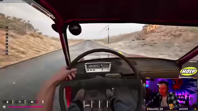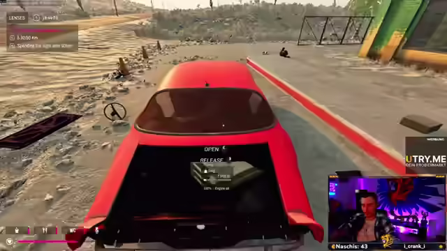 03:42:28Es entstand eine chaotische Situation im Auto, in der ein 'Würstchen' (möglicherweise ein Item im Spiel) verloren ging, was zu Aufregung führte. Es wurde Tokio-Drifting im Spiel entdeckt, was als unterhaltsam empfunden wurde. Das Wetter im Spiel wurde als schlecht und gewittrig beschrieben, was die Grafik beeinträchtigte. Es wurde kurz über Alerts von Stream-Elements gesprochen. Es folgte eine Diskussion über Naschen und Provokationen, wobei eine Person die andere neckte und versuchte, herauszufinden, was sie isst. Später wurden im Auto Gamble-Maschinen gefunden, wobei die Frage aufkam, ob dies ein Problem darstellt. Es gab auch Diskussionen über Deko und das Packen von Gegenständen in den Kofferraum, darunter Toiletten und Alkohol.