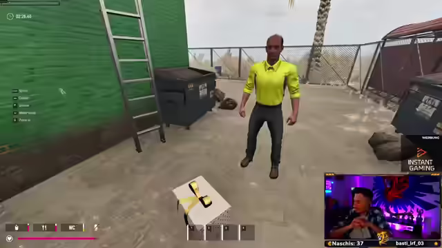01:50:09Es gibt technische Probleme beim Beitritt zum Spiel mit Sam, insbesondere mit dem Passwort. Ein Insider-Witz über "Tangas" wird erwähnt. Es treten Probleme mit der Sichtbarkeit des Passworts auf. Beim Starten des Spiels tritt ein unerwarteter Sound auf. Die Charaktereigenschaften werden untersucht, wobei festgestellt wird, dass der Charakter männlich und nackt ist, aber ein Tanktop und Boxershorts trägt. Es wird festgestellt, dass der Charakter Schaden nimmt und Gegenstände fallen lässt, wenn er geschlagen wird. Die Steuerung des Charakters wird erkundet, insbesondere wie man schlägt. Es wird ein Teammitglied namens Benni erwähnt und dessen Valorant-Aim verspottet. Es wird ein Text vorgelesen, der zu einer Explosion führt. Es wird festgestellt, dass das Spiel wie GTA-Multiplayer funktioniert. Es wird überlegt, warum die Charaktere nach dem Zusammenschlagen wieder aufstehen. Es wird versucht, Waffen wegzupacken und das Spielprinzip zu verstehen. Die Entwickler werden als "Pussys" bezeichnet. Die Mission des Spiels wird als "die Karre wieder zum Laufen zu bringen" definiert. Es wird nach anzüglichen Kleidungsstücken für den Charakter gesucht und ein Rucksack gefunden. Es wird festgestellt, dass man immer wieder "Full Life" hat. Ein Bier wird erwähnt und die "fett Firma" wird an die Wand gefettet. Es wird eine Brille auf der Pizza entdeckt, die man tragen möchte.