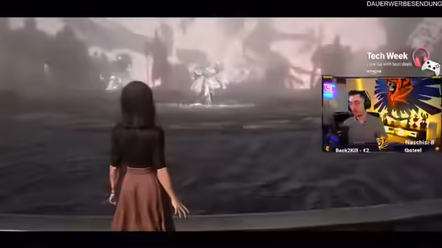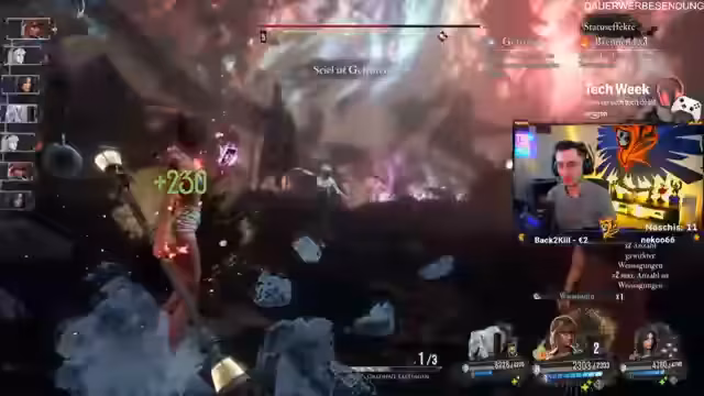 00:49:12Der Streamer kämpft gegen den Boss 'Claire', welche mit starken Heilfähigkeiten und Karten-Attacken auffällt. Der Kampf gestaltet sich schwierig, insbesondere durch ihre Fähigkeit, Teammitglieder 'einzusaugen', was zur Niederlage führt. Der Streamer analysiert den Kampf und denkt über Strategien nach, um diese Hürde zu meistern. Auch die Mechanik des Spiels und die Waffenupgrades werden diskutiert.