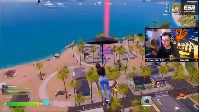 04:36:47Die Spieler verfolgen einen Gegner in der Traderhall von Norex. Es entbrennt ein Chaos im Wasser, während die Gruppe versucht, den fliehenden Gegner mit Tricks wie Schlafen, um Regen zu stoppen, und diversen Waffen wie Dreizack und Stärken-Potion zu stellen. Taktische Anweisungen wie Hitbox-Anzeige und Koordinaten (minus 150, 1350) werden ausgetauscht, während der Gegner im Meer um das Hotel manövriert.