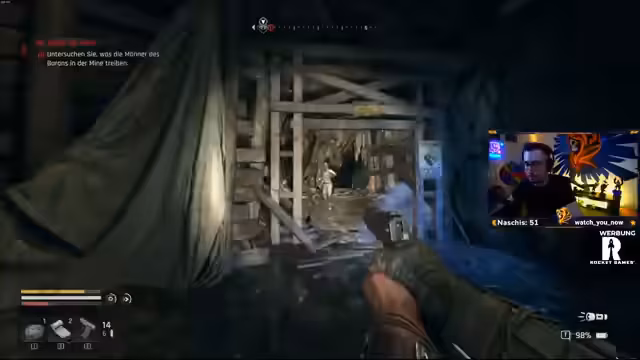 02:17:24Der Streamer konzentriert sich auf das Hauptziel, das Spiel im No-Death-Modus durchzuspielen. Dabei plant er seine Route, vermeidet nächtliche Aktivitäten und sucht aktiv nach Ausrüstungsgegenständen und Craft-Rezepten. Er discutiert den Bau von Blinkgranaten, Rohrbomben und Gasgranaten als taktische Optionen und stellt fest, dass das Inventar schnell voll ist, was strategisches Entscheiden erfordert. Das Gameplay dreht sich um Ressourcenmanagement und das meiste vermeiden von Kämpfen, um den Fortschritt nicht zu gefährden.