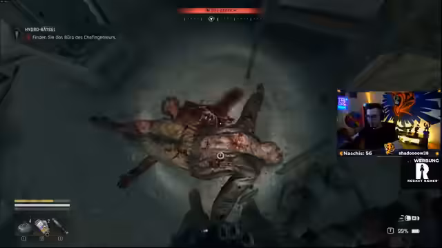 02:55:25Ein intensiver Bosskampf gegen einen mächtigen Gegner wird erfolgreich gemeistert, nachdem der Streamer zuvor Buffs wie Damage- und Ausdauererhöhungen aktiviert hat. Durch strategisches Platzieren von Minen und den Einsatz von hergestellten Riegeln gelingt es ihm, den Schaden zu minimieren und die Kontrolle über die Situation zu behalten. Sieg-Personal-Bests werden im Chat gefeiert und der Sieg als locker beschrieben.