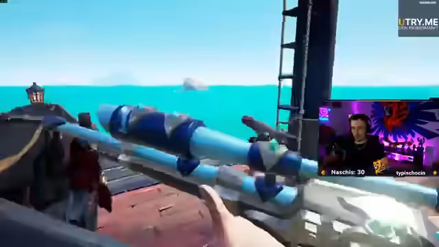 00:22:52Der Streamer setzt sein Spiel in Sea of Thieves fort. Er konzentriert sich darauf, eine wertvolle Truhe des Glücks sicher zu einem Stützpunkt zu bringen und wird dabei von gegnerischen Schiffen verfolgt. Trotz gefährlicher Umstände wie eines Sturms und der Angst, von seinen Verfolgern unter Beschuss genommen zu werden, schafft er es, die Truhe erfolgreich abzugeben. Er äußert seine Hassliebe zum Spiel.