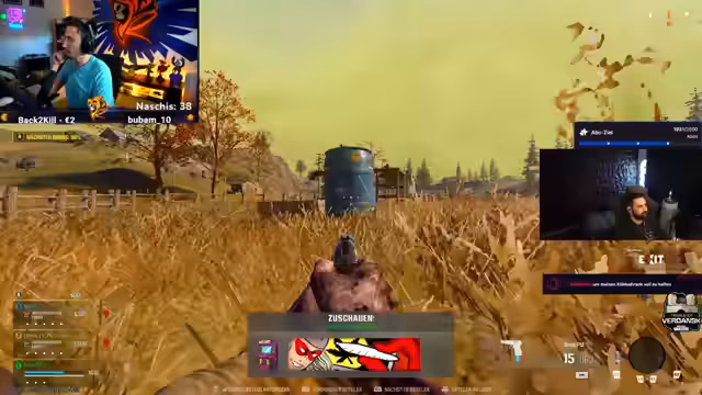 00:37:36Während der ersten Runden des Spiels stößt das Streamer-Team mehrfach auf Cheater. Ein Gegner wird verdächtigt, Aimbot zu nutzen, da er in einer Sekunde durch die Wand gezielt hat und einen Headshot landete. Trotzdem scheidet das Team relativ schnell aus der Lobby aus, was den Streamer verärgert. Er kommentiert, dass in Warzone undRanked-Modi das Cheaten ein großes Problem sei und die Erfahrungen nach einer Spielpause frustrierend seien.