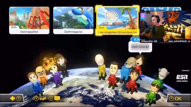 05:39:42Die Teilnehmer diskutieren über ein bevorstehendes Event, das voraussichtlich zwischen dem 10. und 18. stattfinden wird, wobei die genauen Daten und die Öffentlichkeit noch unklar sind. Es wird erwähnt, dass das Event in Hamburg stattfindet, was für einige Teilnehmer eine weite Anreise bedeutet. Ein Teilnehmer freut sich besonders auf ein Wiedersehen mit Willi, wobei sie sich an ein früheres Treffen auf der Gamescom erinnern. Die Stimmung ist ausgelassen und freundschaftlich, während sie sich auf das Mario Kart 8 Turnier vorbereiten. Die Spieler machen sich bereit für den Start des Turniers, wobei die Vorfreude auf die kommenden Rennen deutlich spürbar ist. Die Kommunikation ist rege, und es werden letzte Absprachen getroffen, bevor das eigentliche Turnier beginnt. Die Spieler sind motiviert und bereit, ihr Bestes zu geben, um das Turnier zu gewinnen und sich gegenseitig in freundschaftlicher Weise herauszufordern.