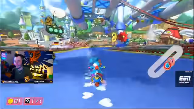 05:03:30Nach einer kurzen Pause und der Behebung technischer Probleme starten die Spieler in eine neue Runde. Die Stimmung ist gemischt, da die vorherige Runde knapp verloren wurde. Es wird über die Bedeutung von Teamwork und der richtigen Nutzung von Items gesprochen. Ein Spieler fordert seine Teamkollegen auf, ihr Bestes zu geben und sich nicht über Misserfolge zu beschweren. Die Teamfarben werden erneut geklärt, um Verwechslungen zu vermeiden. Die Spieler konzentrieren sich auf das Rennen und versuchen, ihre Positionen zu halten und Angriffe abzuwehren. Es kommt zu hitzigen Momenten, in denen die Spieler ihre Frustration über die Spielmechaniken äußern, aber auch ihre Entschlossenheit zeigen, weiterzukämpfen. Die Diskussionen über die Strategie und den Einsatz von Items sind intensiv, da jeder Punkt zählt.
