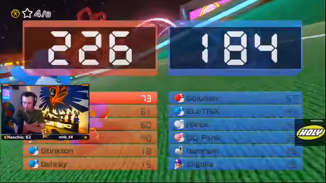 04:38:04Nach einer weiteren frustrierenden Runde, in der ein Spieler durch mehrere rote Panzer getroffen wird, wird die Strategie angepasst, um in den ersten Runden defensiver zu fahren und bessere Items zu erhalten. Es kommt zu einer humorvollen Auseinandersetzung zwischen zwei Spielern über Glück und Pech bei den Items. Während des Turniers treten technische Probleme auf, die zu Übertragungsfehlern führen und dazu zwingen, eine neue Lobby zu erstellen. Trotz dieser Unterbrechungen bleibt das Team motiviert und stellt fest, dass sie punktgleich mit den Gegnern sind, was die Spannung für das letzte Rennen erhöht. Ein Spieler erinnert sich an einen erfolgreichen Angriff auf einen Gegner kurz vor der Ziellinie, der entscheidend für die Punkteverteilung war. Die Spieler diskutieren auch über die Anzeige der eigenen Platzierung und die Bedeutung von Teamfarben im Spiel.