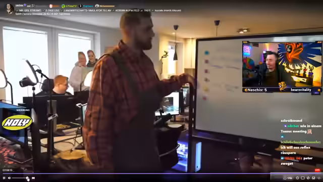 03:12:04Es wird über die Leistung in Mario Kart diskutiert, insbesondere über einen Spieler, der als 'washed up' bezeichnet wird. Die Rede ist von der Notwendigkeit eines 'Fights vom Quark'. Es kommt die Idee auf, eine 'Tschernobyl-artige Map in Arc Raiders' zu implementieren, da dies gut zum Spiel passen würde. Während des Spiels treten technische Probleme auf, das Bild des Monitors wird als 'komplett blass' beschrieben, obwohl das Elgato-Signal in Ordnung zu sein scheint. Es wird versucht, das Problem durch das Ziehen und Wiedereinstecken von Kabeln zu beheben, was jedoch nicht sofort Erfolg hat. Die Spieler machen sich Gedanken über die Ursache dieser Bildstörung und versuchen, Lösungen zu finden, die von 'Kabel ziehen' bis hin zu 'Elgato Classic' reichen.